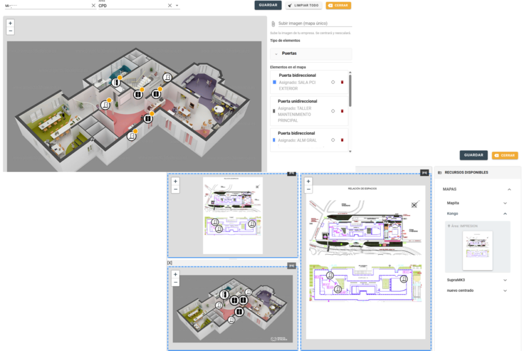BioTecMonitor integra planos y sinópticos interactivos sobre los que se representan accesos, cámaras y demás elementos de la instalación. Desde esta interfaz gráfica es posible visualizar en tiempo real alarmas, eventos y vídeo en directo, así como interactuar de forma inmediata con cada punto de acceso, autorizando o denegando operaciones según las circunstancias
